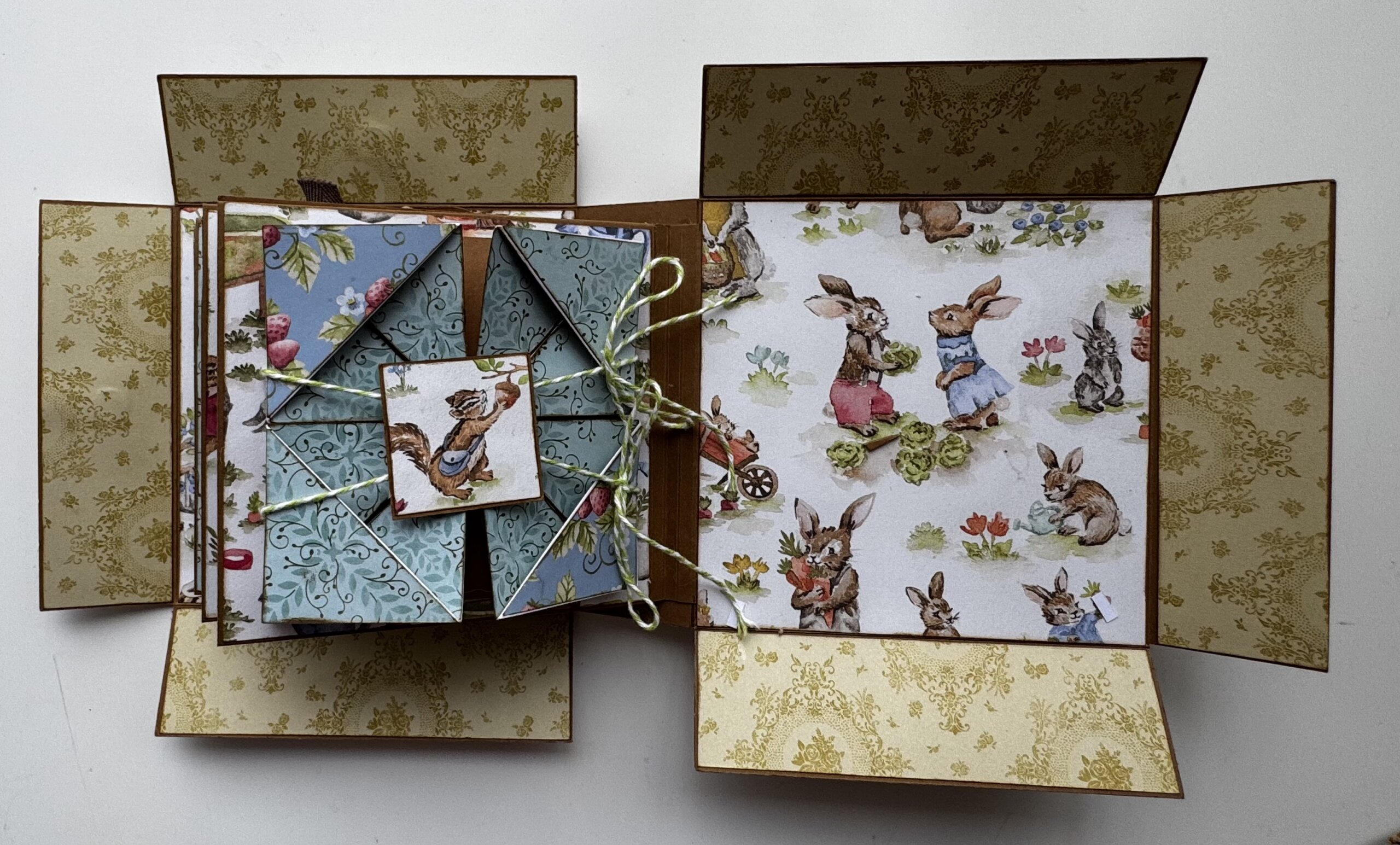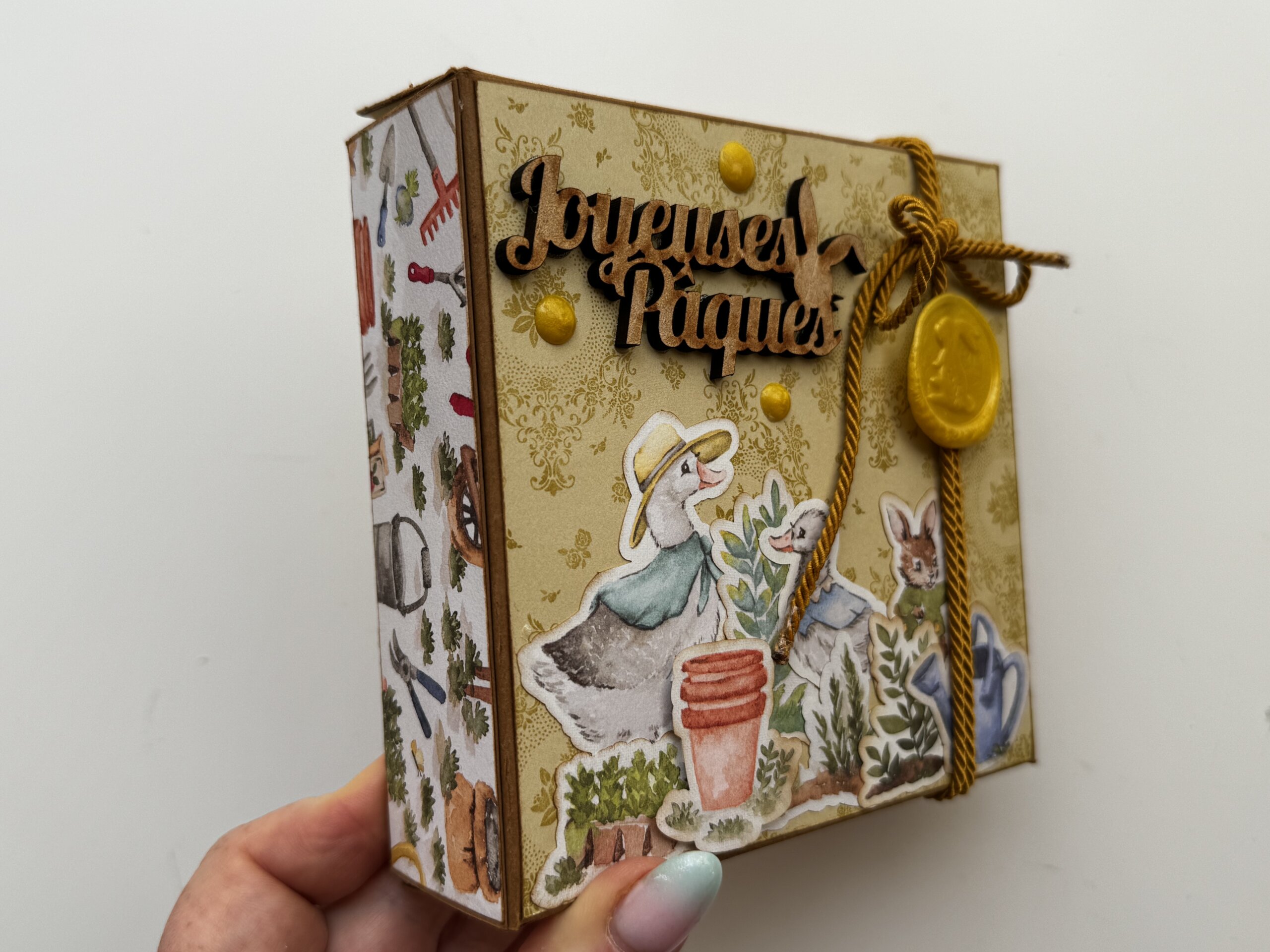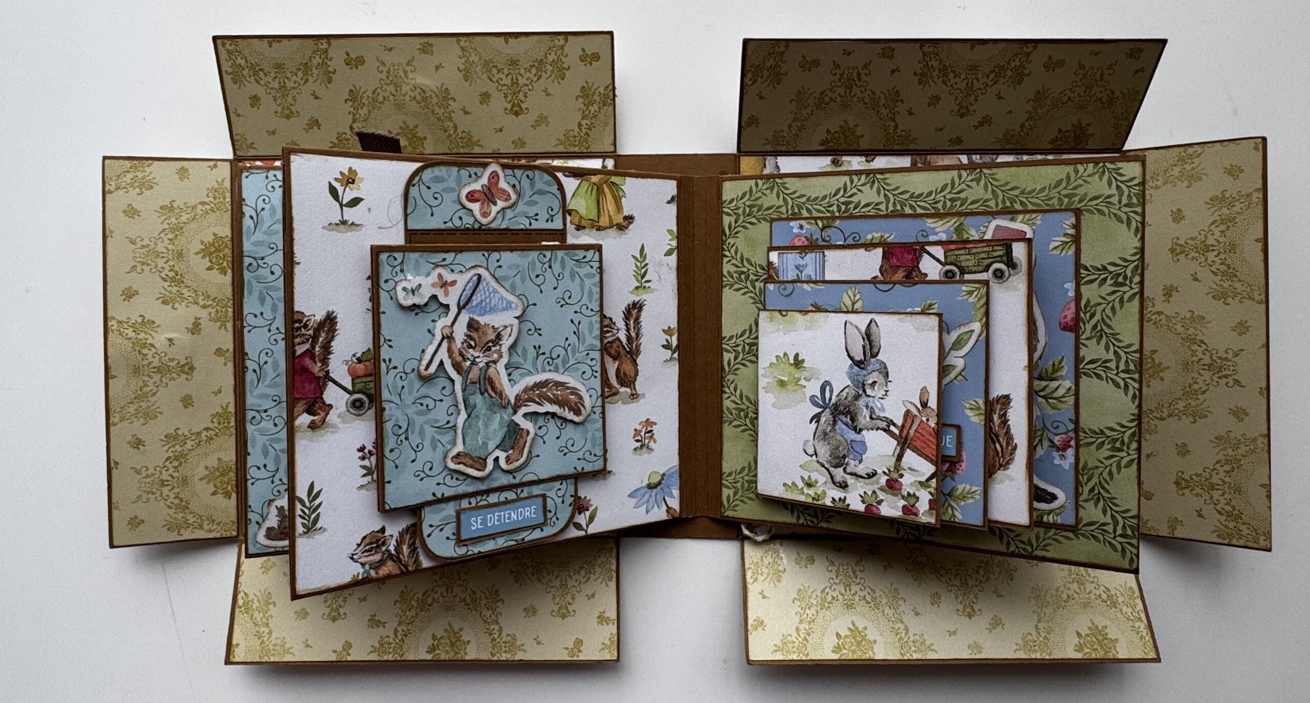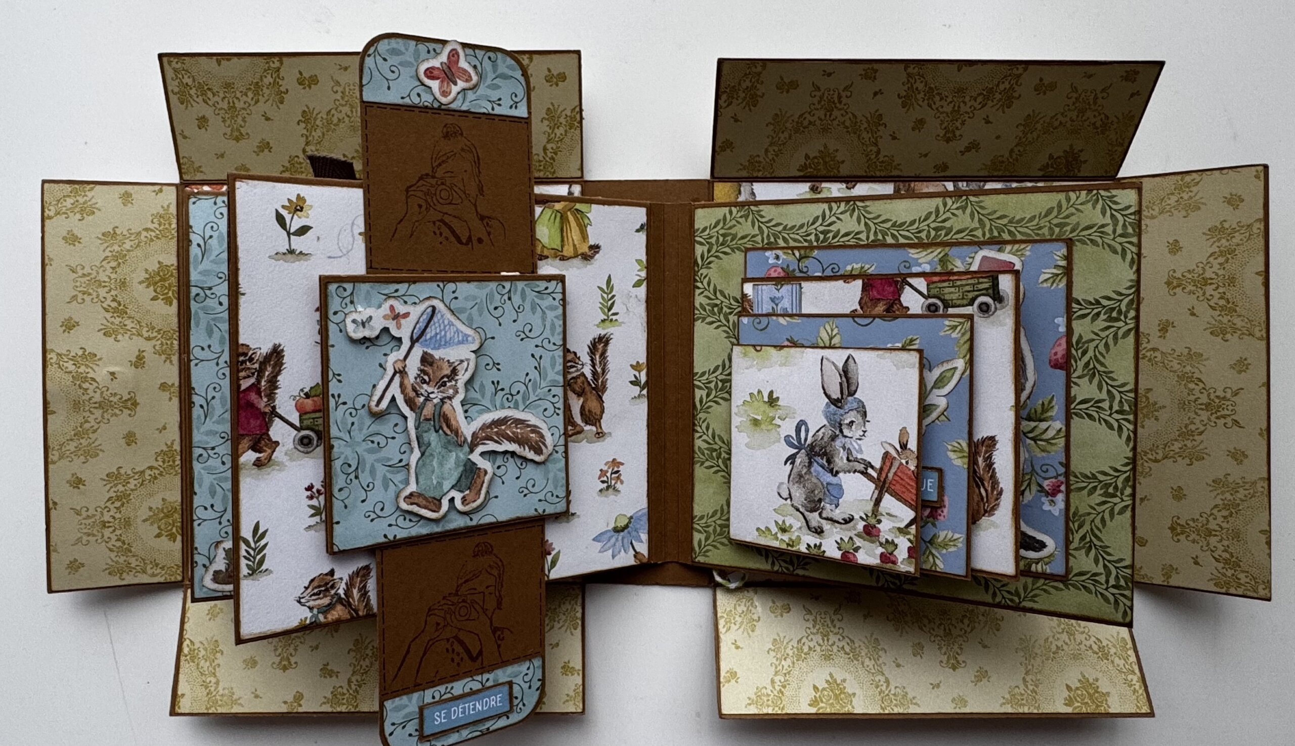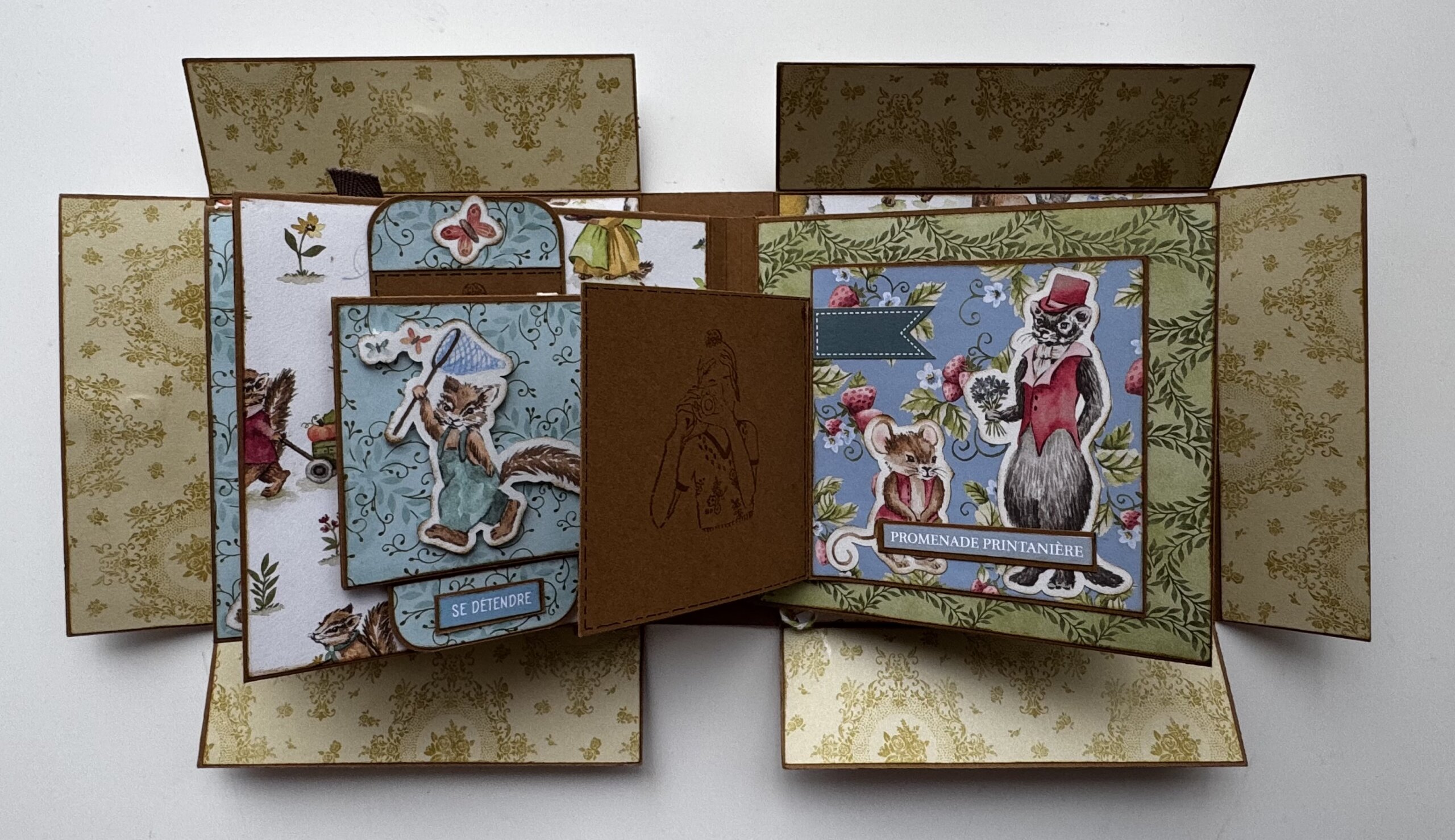 Je l’ai réalisé avec la collection de papier « Livre de contes » de chez Stampin’up. L’album de l’atelier reste bien sur la surprise, mais nous, nous approchons du printemps.