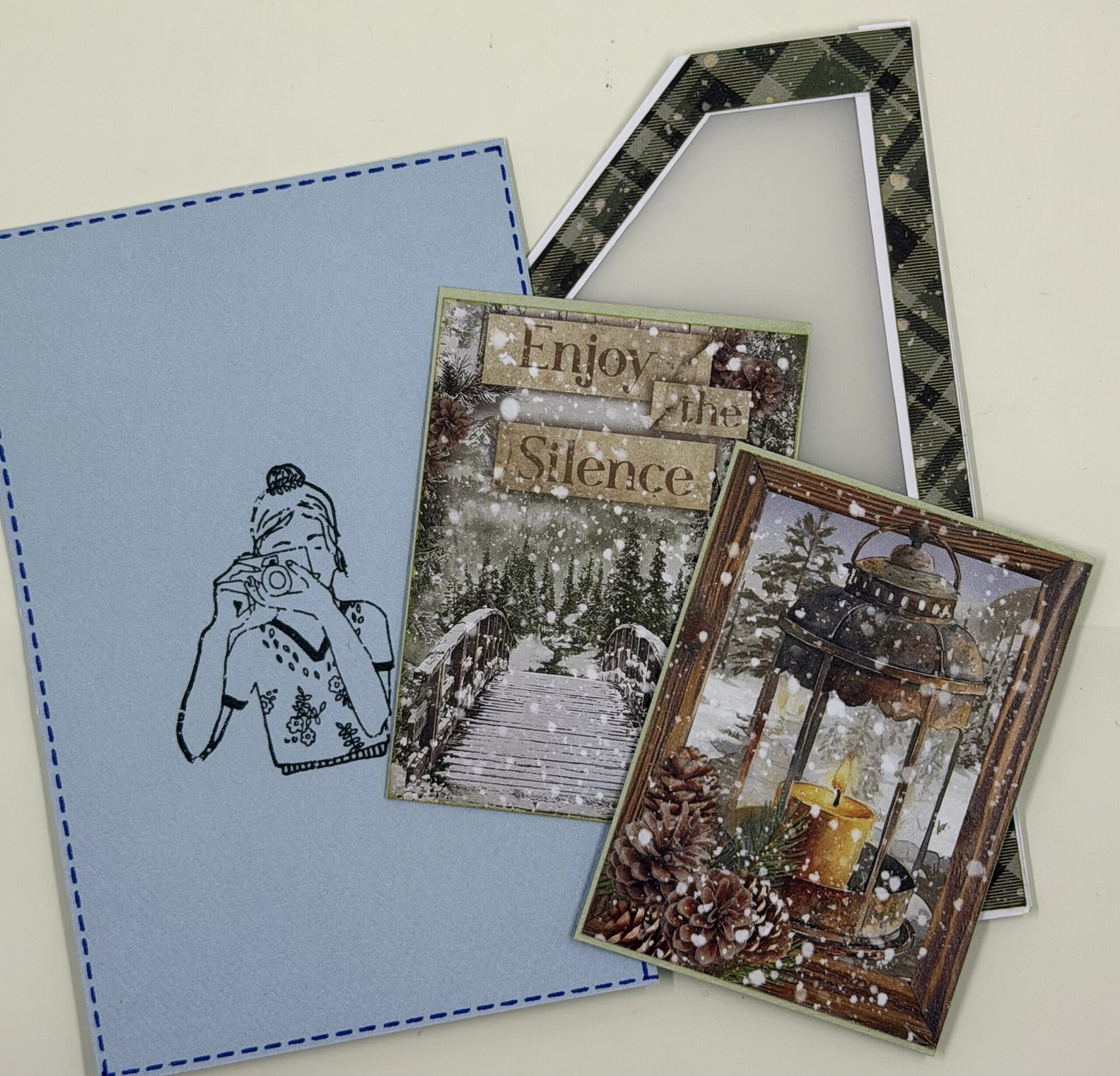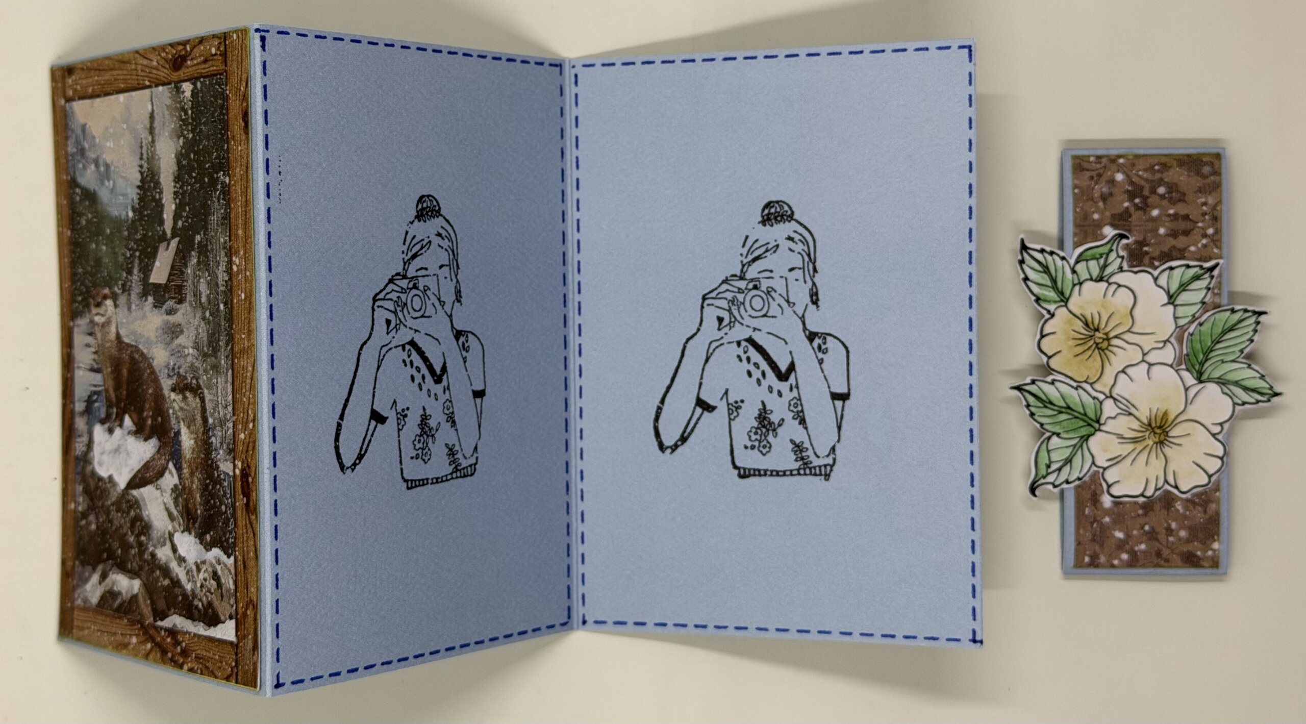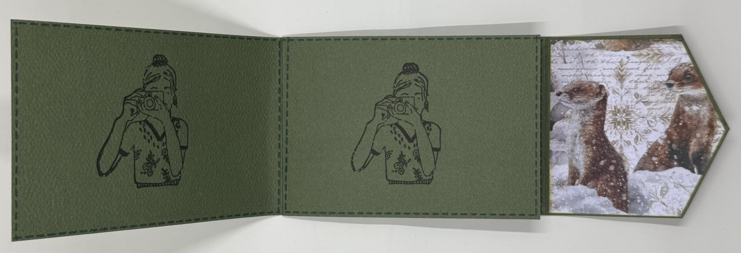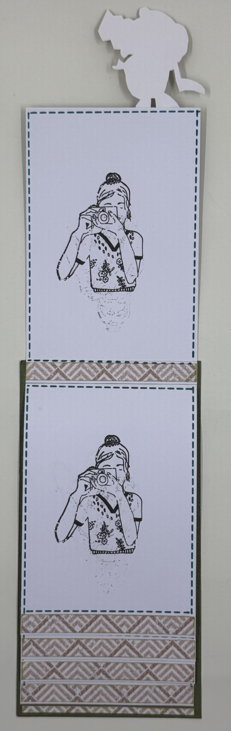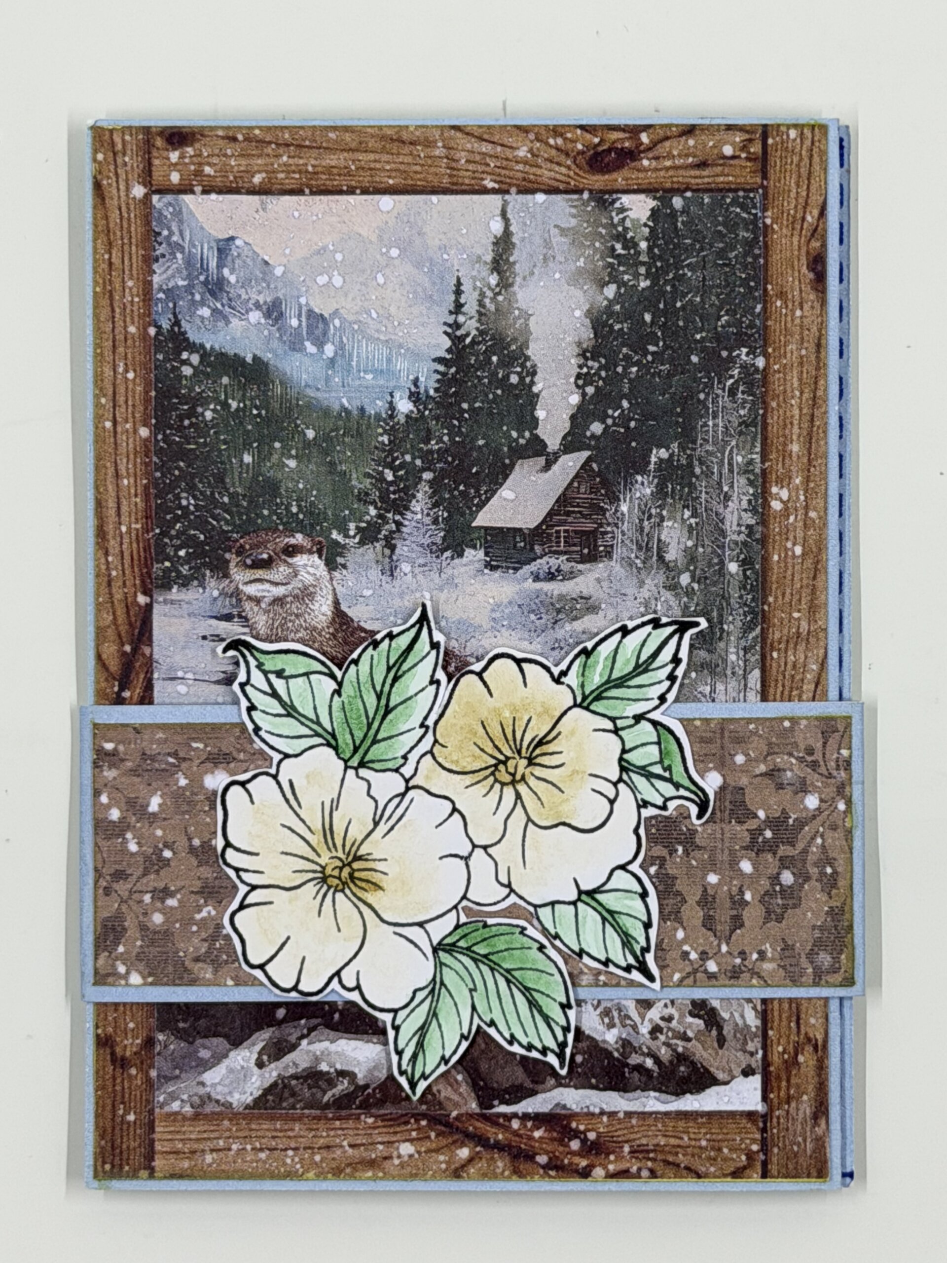 La couverture est sublimée par une fenêtre shaker remplie de sequins soigneusement assortis aux papiers, apportant mouvement et éclat à l’ensemble. Les embellissements colorisés à la main viennent donner relief et douceur au projet.