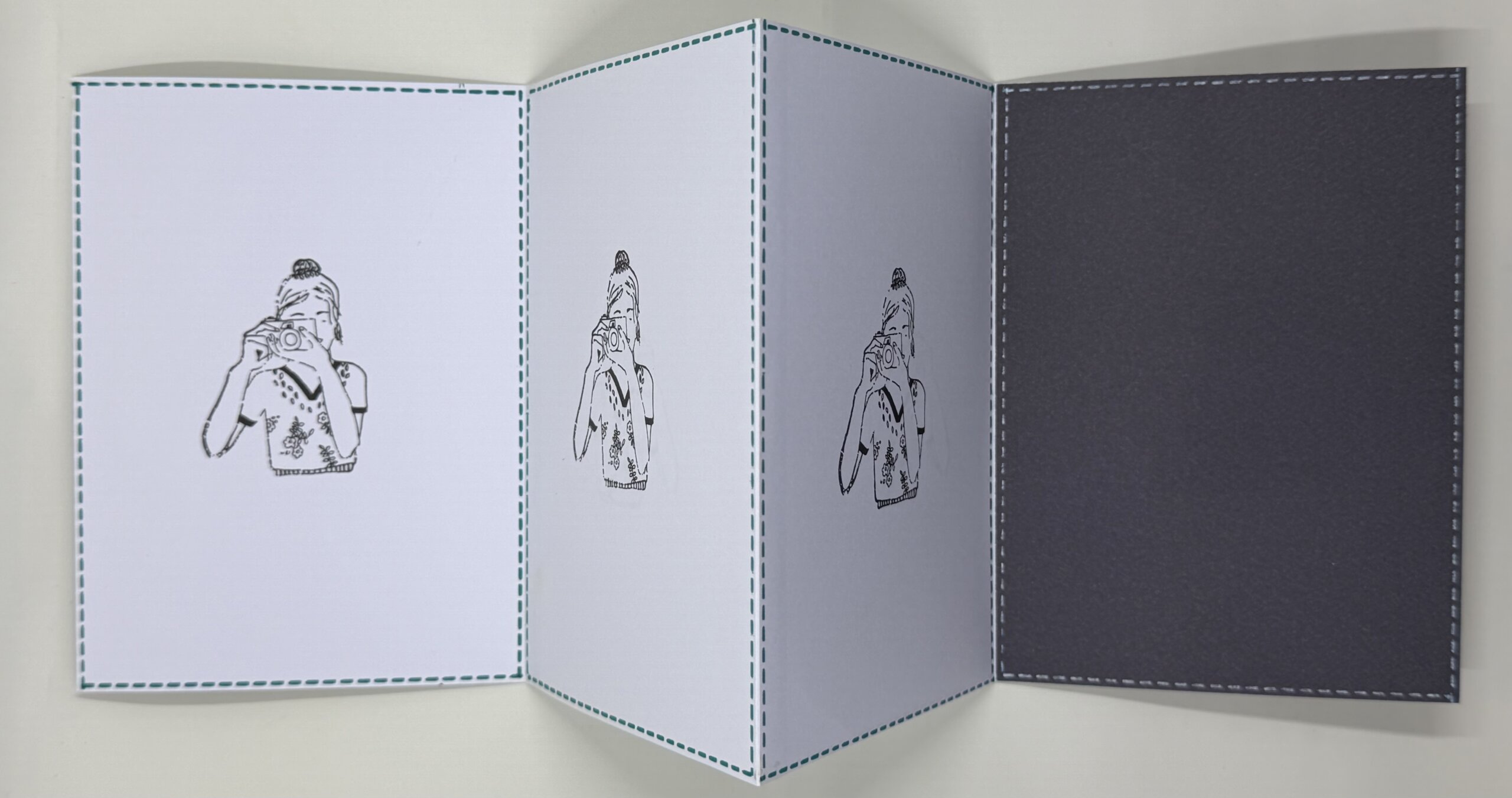Cet album se présente sous la forme d’une boîte habillée de papiers coordonnés, fermée par un ruban.