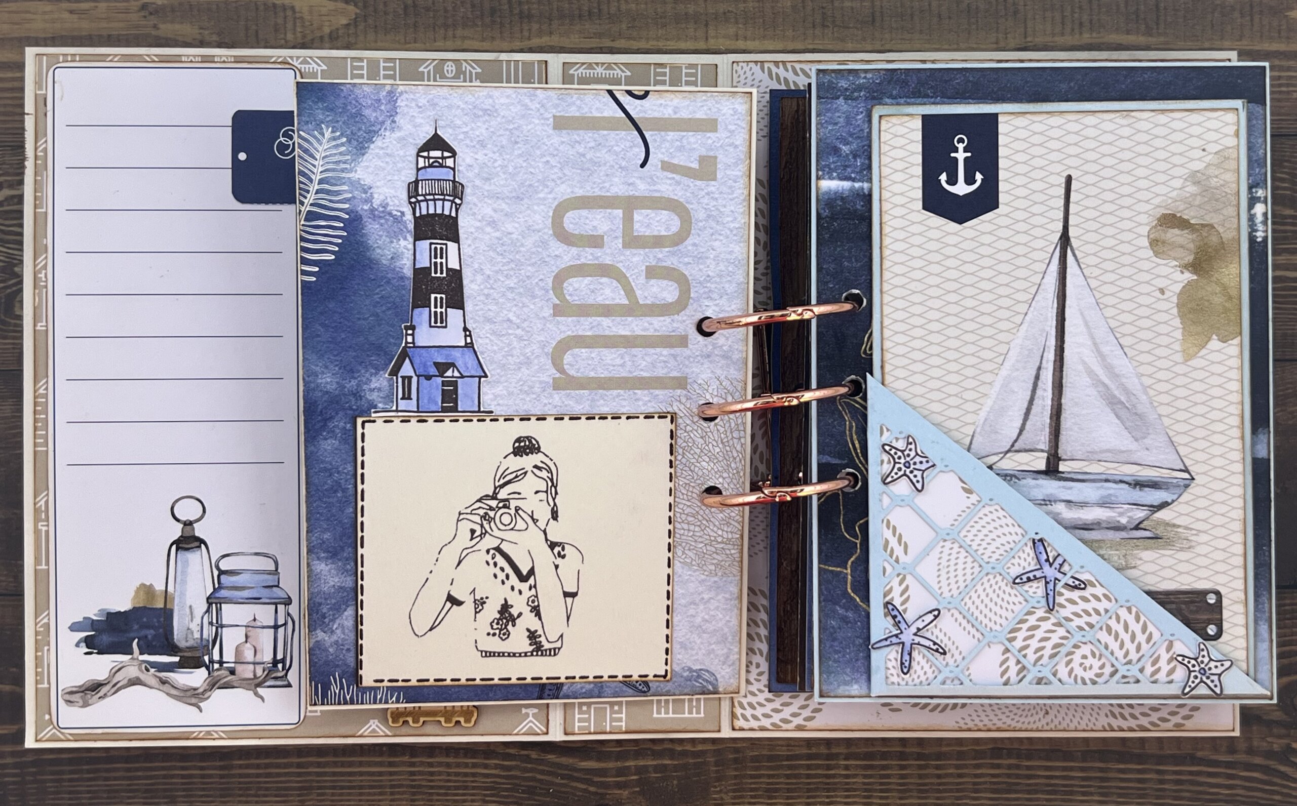 Voici l’album que j’ai réalisé sous le thème des vacances et de la mer. Cet album est maintenu avec une reliure 3 anneaux que vous pouvez trouver chez Zibuline