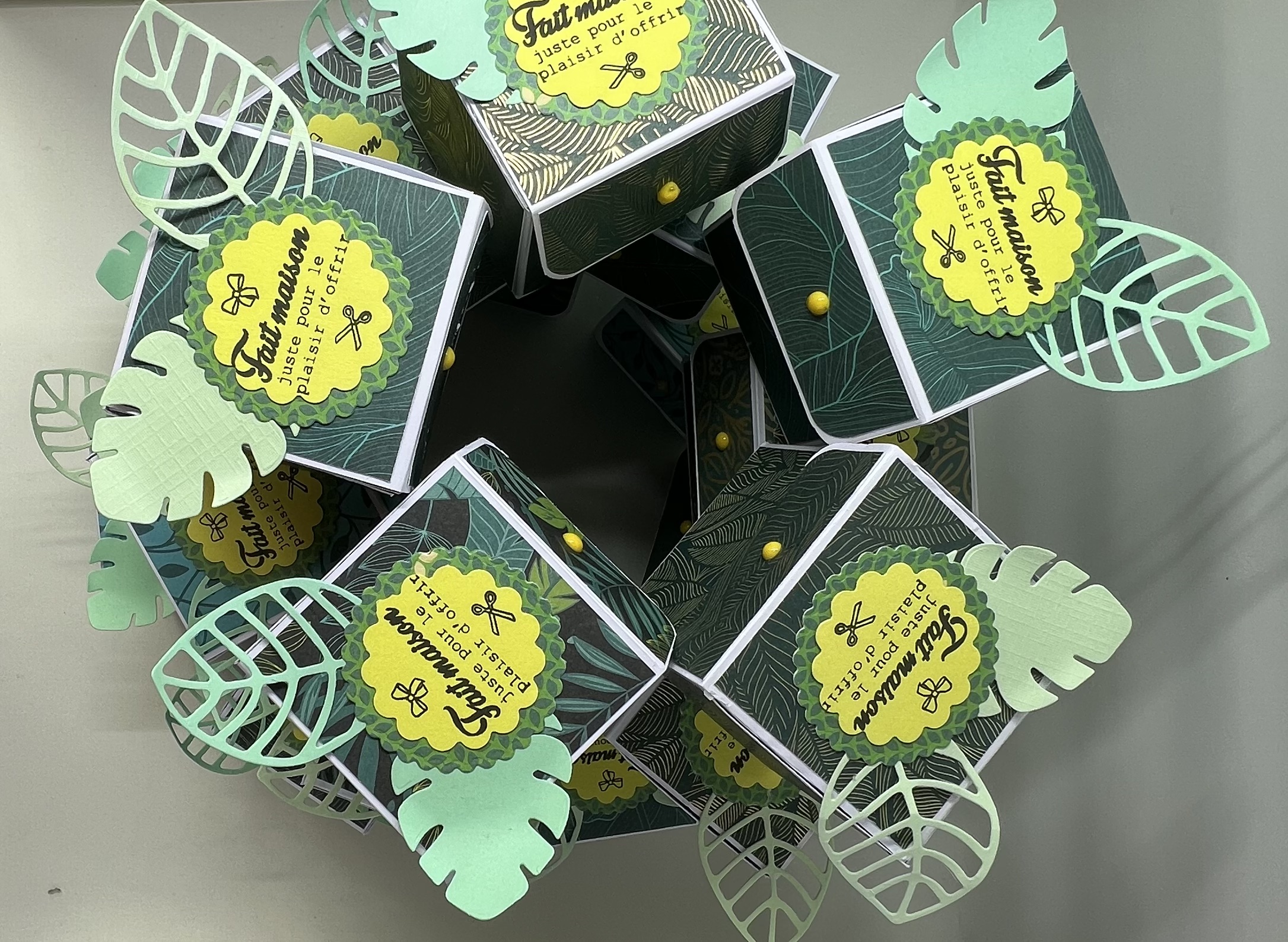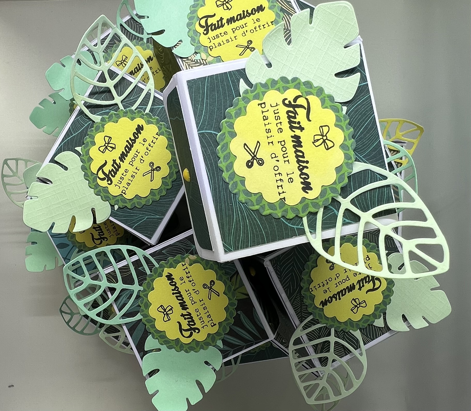 À chaque atelier, pour nos adhérentes présentes, nous leur préparons un petit cadeau. Le choix du mois de mars a été de réaliser ces petites boîtes, mais pas si petite tout de même, car elles font 6,5 cm de côté.