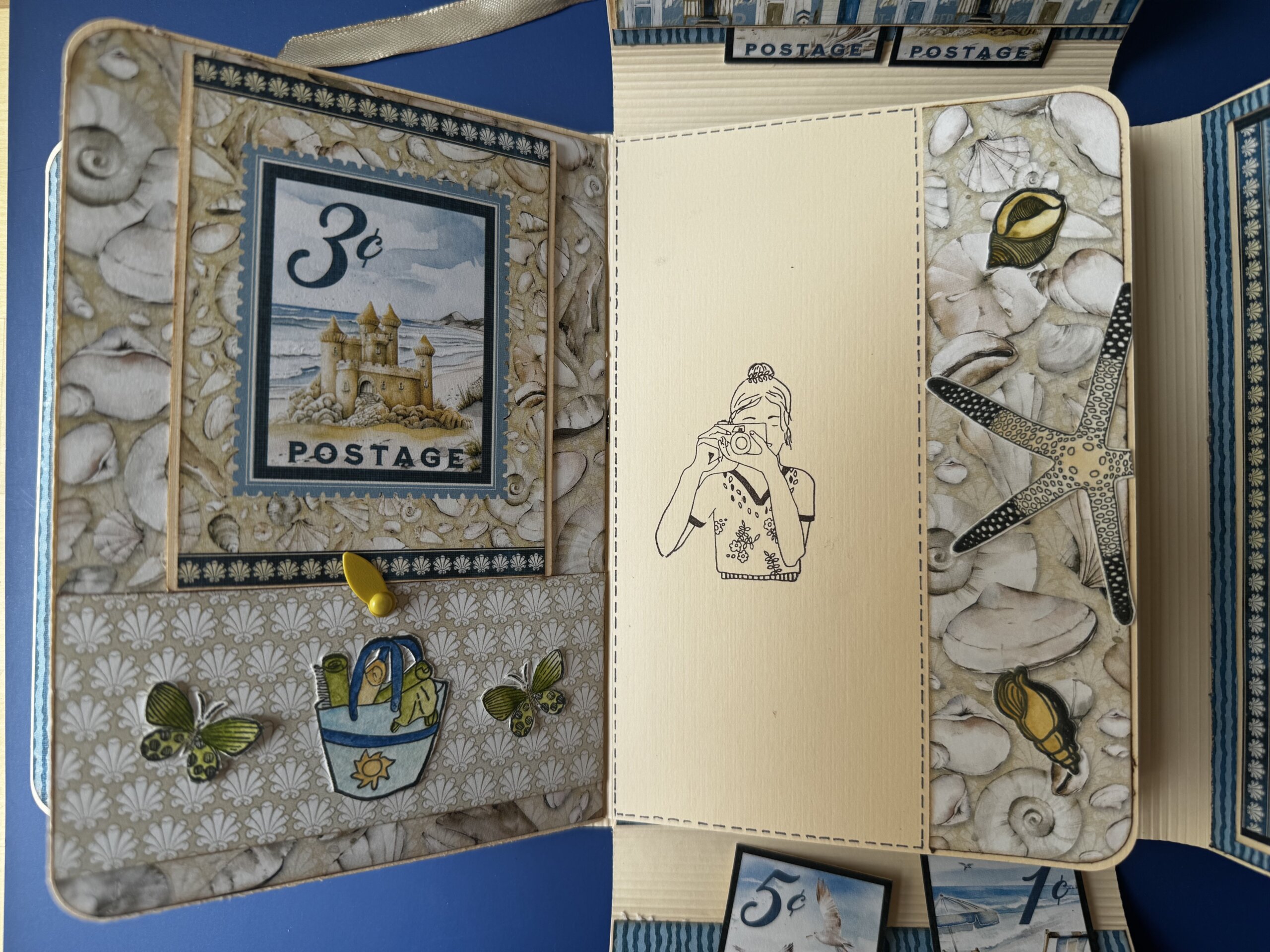 Voici notre dernier atelier de la saison 2023/2024, et nous terminons avec une pochette de vacances, contenant un mini album.