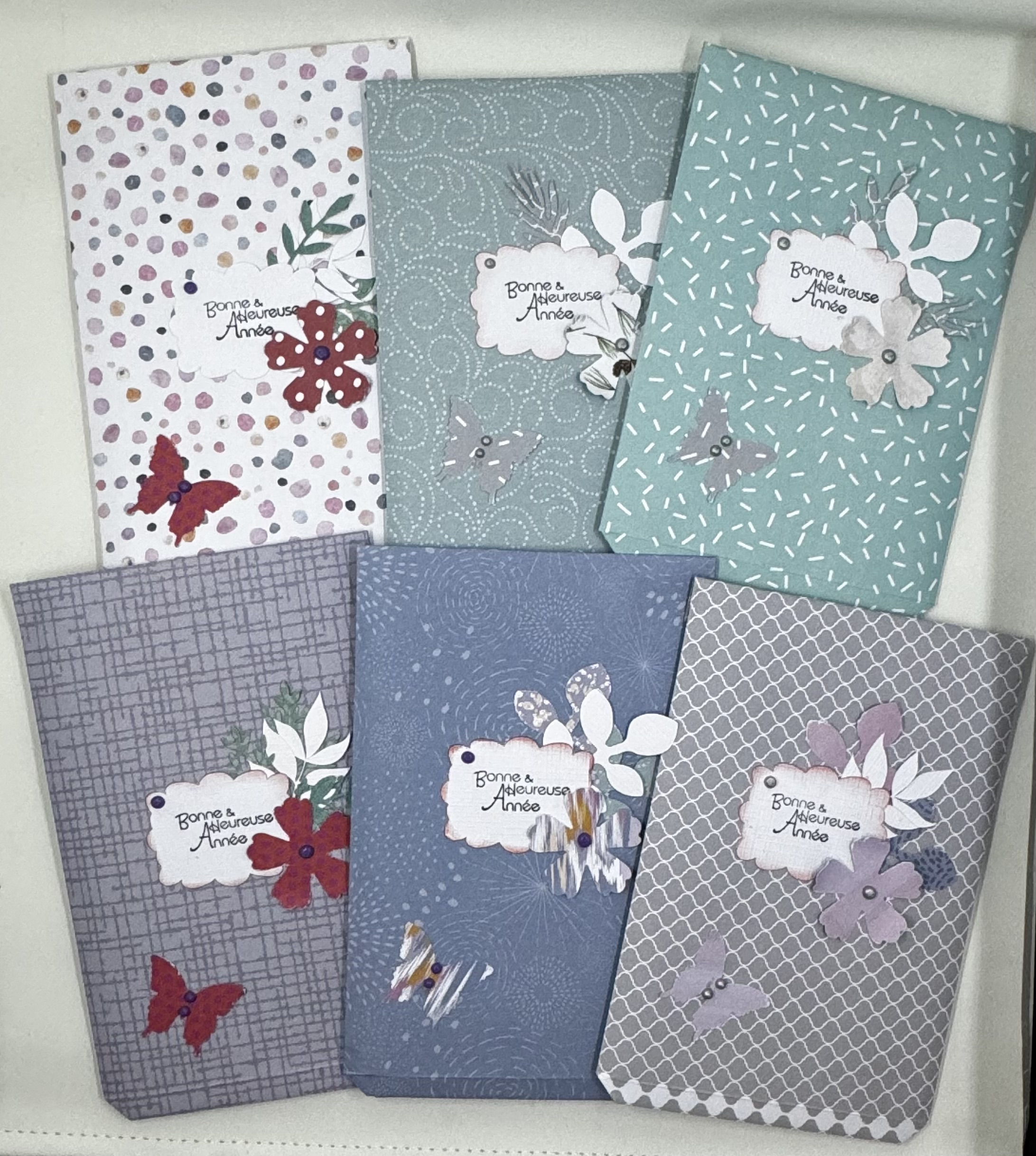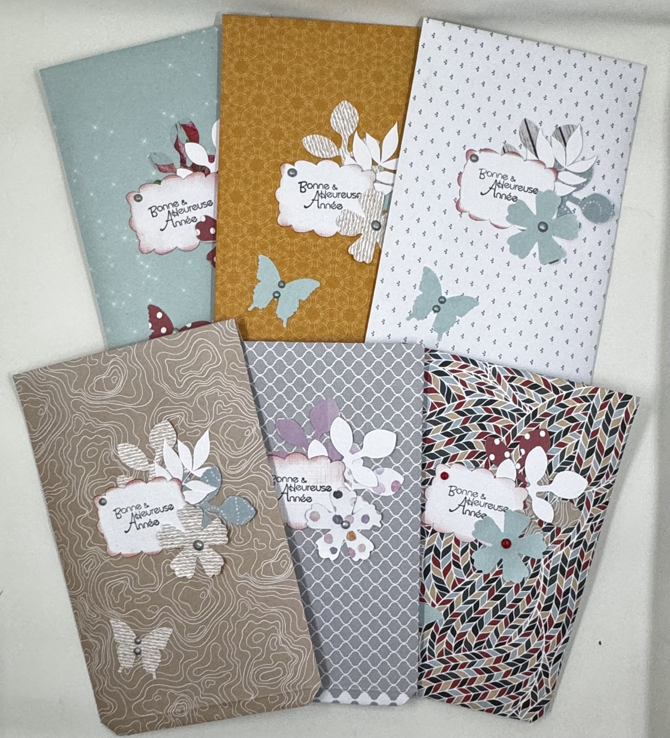Voici les pochettes cadeaux que j’ai réalisé pour mes adhérentes présentes à l’atelier de ce jour et pour leur souhaité une bonne et heureuse année.